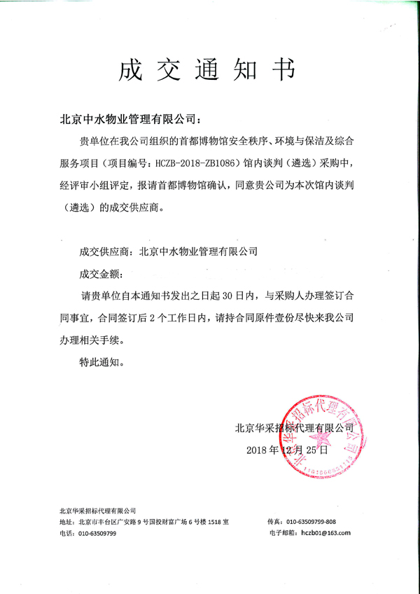 首都博物馆安全秩序、环境与保洁及综合服务项目成功中标
