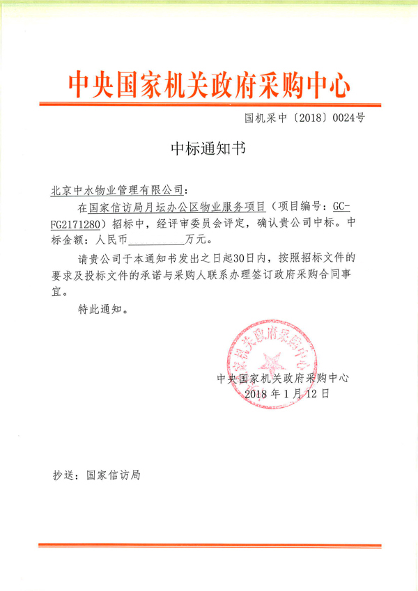 国家信访局月坛办公区物业服务项目成功中标