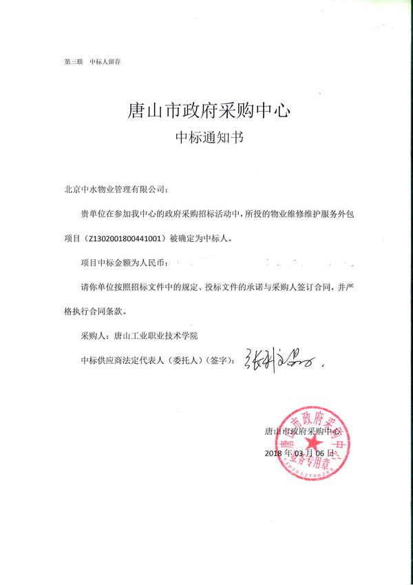 唐山工业职业技术学院物业维修维护服务项目成功中标