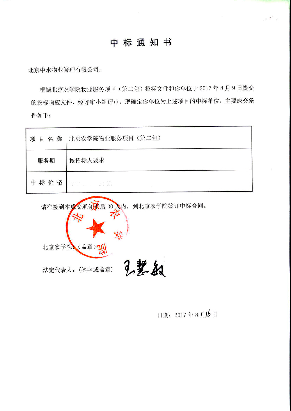 中国人民解放军国防大学军事文化学院教学场地物业管理服务项目成功中标