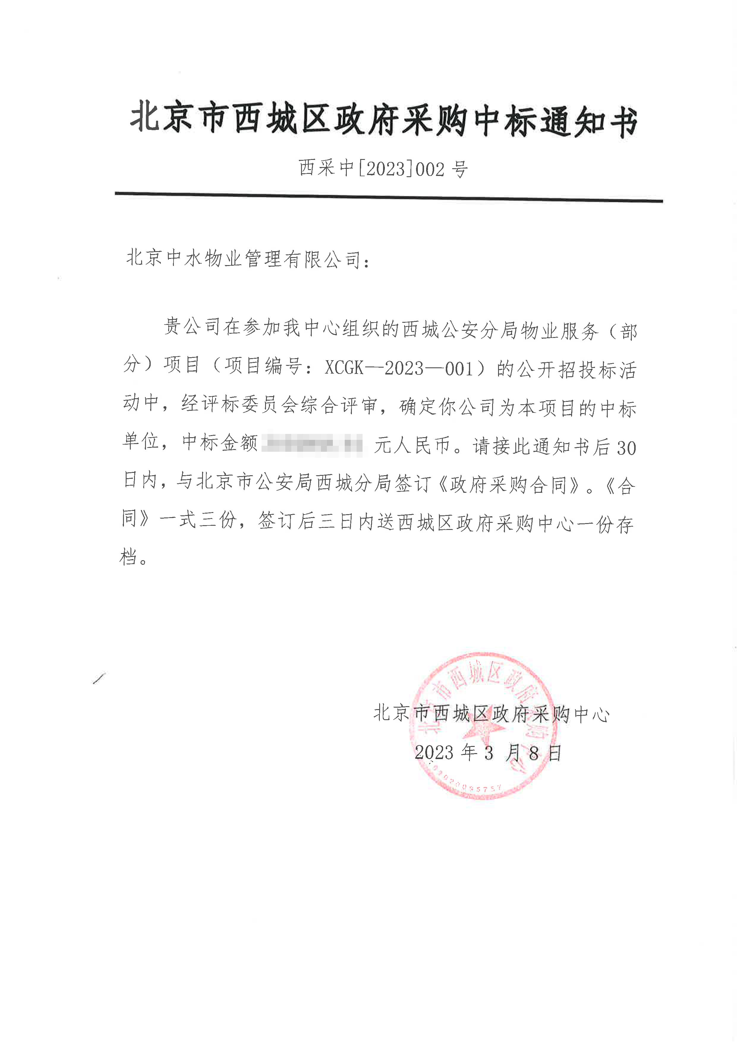 中水物业成功中标西城公安分局府右街、经侦等九个派出所物业服务项目
