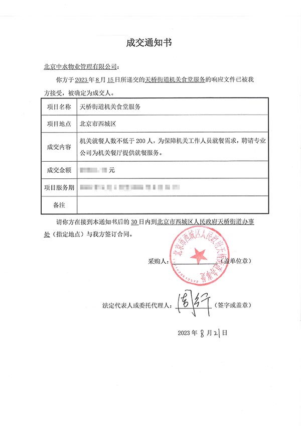 中水物业成功中标天桥街道机关食堂服务项目